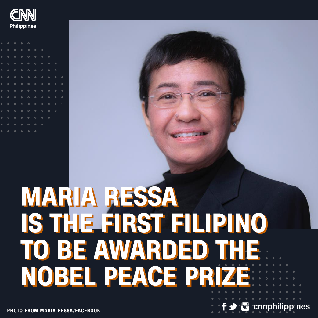 Ressa is the first Filipino to receive the award and the first woman to be awarded a Nobel Prize this year.